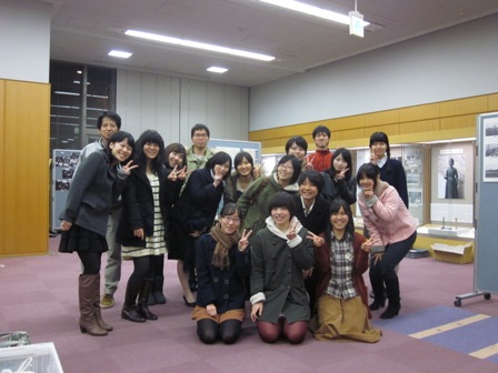 ◆ひととおり終わって記念写真。あんまり自分たちの展示は見えず、向こうに見えるのは大学史資料室による看護学科の展示だが、また改めて展示Aの画像は紹介します。