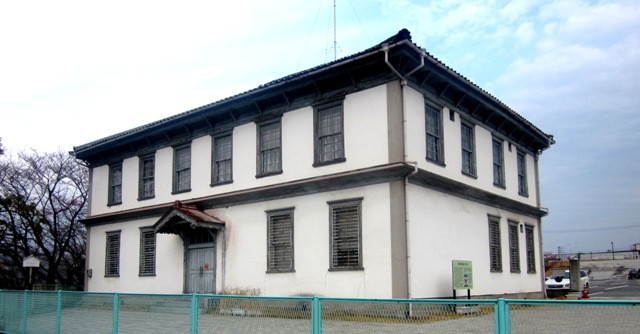 この建物は、1903年に竣工した旧芦品郡役所庁舎です。旧芦品郡役所庁舎 この建物は、均整のとれた全体のプローポーシヨン、しっくい壁に隅石風の飾り、胴蛇腹・窓枠・ひさし・玄関(車寄せ)軒等の飾り、内部 ではド ア、手すりのデザイン等、明治前期に建てられた洋風建物をよく観察し勉強して作られた擬洋風建物です。