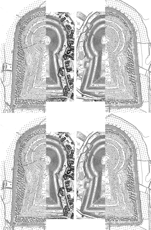 詰める。が、結局のトコロ、枠はそうでも、立地で大きく異なる。作山は丘陵側に前方部を置くので(仲津山も同じだが程度がだいぶ違う)、前方部下段・中段・上段の割り付けも変わっくる。上は後円部あわせ、下は前方部あわせ。相似墳なんて適当なんもや、と言われればそれまでだが、そうではない。そういうのが実態なのである。で大元の型はあるわけで、それに現場あわせのなかで、個々ができあがるわけだ。