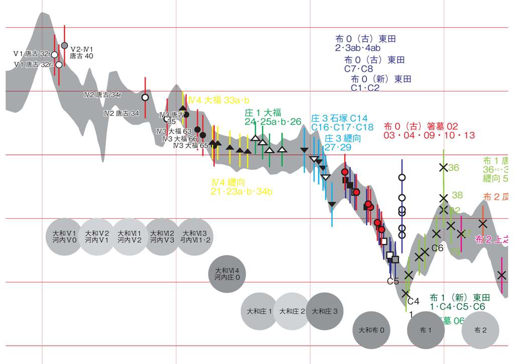 ◆歴博原稿の冒頭で、C14年代を整理した(報告が不親切なので、とんでもなくメンドクサイ!)。その図を示しておく。