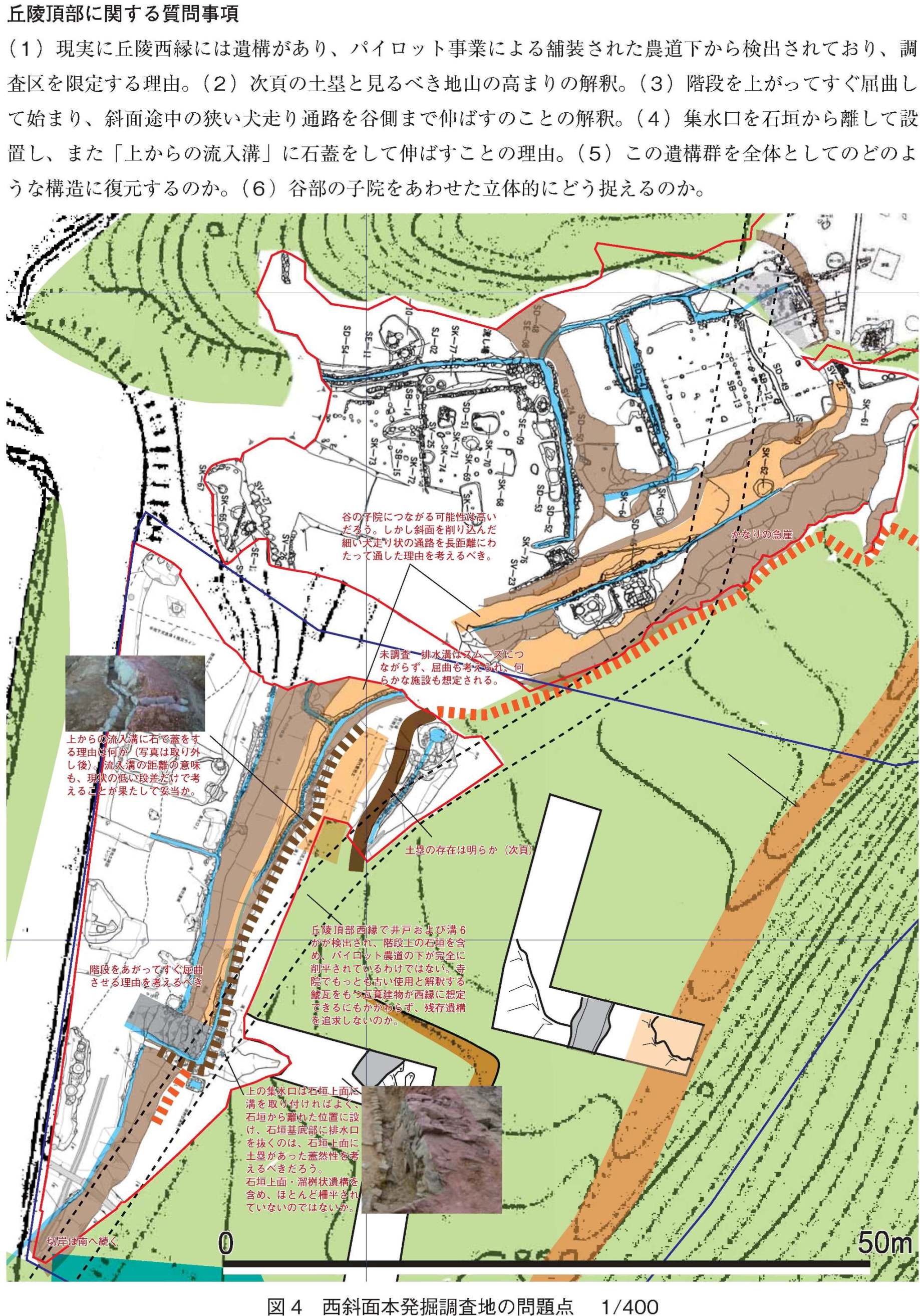 ◆これで再調査が指示されないなら・・・。まあ、やめときます。とにかく、このまま簡単には終わらせません。まあ、それにしても、こういう作業をなんでやらんなあかんねん、と思う。こういう作業というのは谷部の遺構などと合成し、どうつながるんだろうかと考えたり、古い空中写真や地形図と対比して、痕跡をさがしたり。普通、調査報告書というのは、そういうの込みで検討し、その遺跡の評価を与えるのんとちゃうのか、ということ。そんなこともしないで、よくまあ・・・。