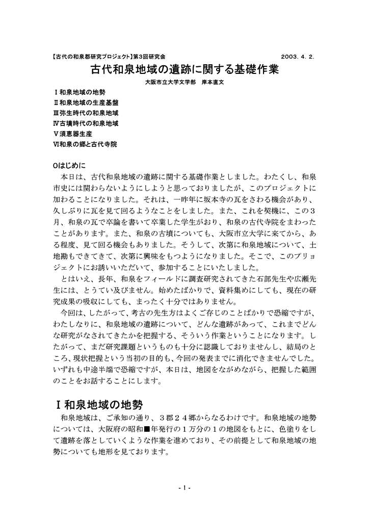 ◆2003年に、和泉市史編纂のために、栄原先生が組織した和泉郡研究会だかなんとかで、1回発表してくれということに