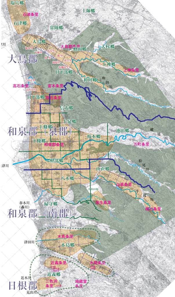 群などについても勉強し、いまの基礎となっている。さて、過去は過去。しかし、この図のようなものがあるに越したことはない。全体がよくわかる。和泉の条里復元を8000の1でやっているが、それはそれとして全体像はこっちの方がスグレモノだ。こうした図をいまから合成であれやっていくのは並大抵ではないし、どうしたもんだべ。