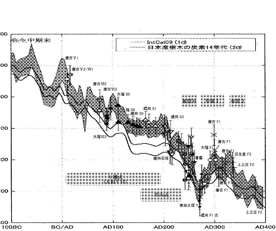 ◆わからんけど、どうもそのへんに鍵があるように思えてならない。そういうことは十分わかっていて、検討されているのでしょうが、ダブリを少なめにして、連続的に配列しようとするから、庄内が押し込められているような気がする・・・。C14JCAL値では、庄内1式は2世紀後半になる=石塚。石塚がタテツキより確実に新しい、と言えるんだろうか?。