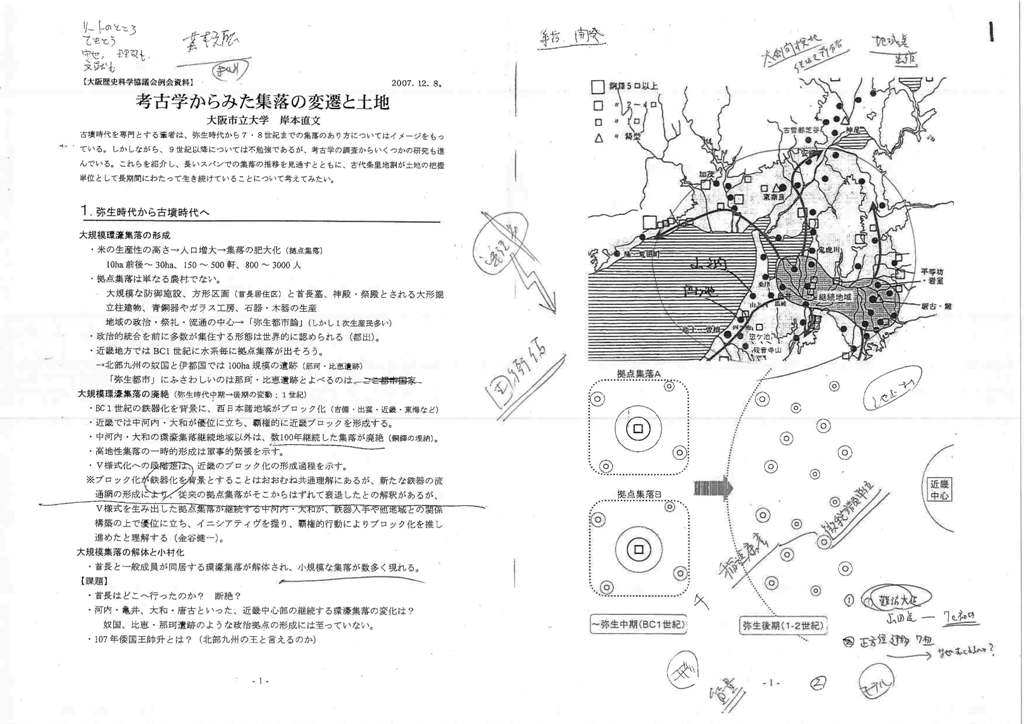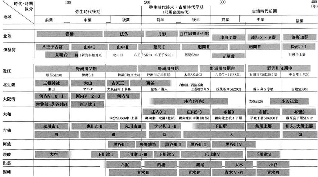 ける後期の土器と庄内式の平行関係の問題。庄内甕は特定のところにしか出てこないんでしょ。まわりは後期の土器だと。そのカブリ具合が突き詰められているのだろうか。