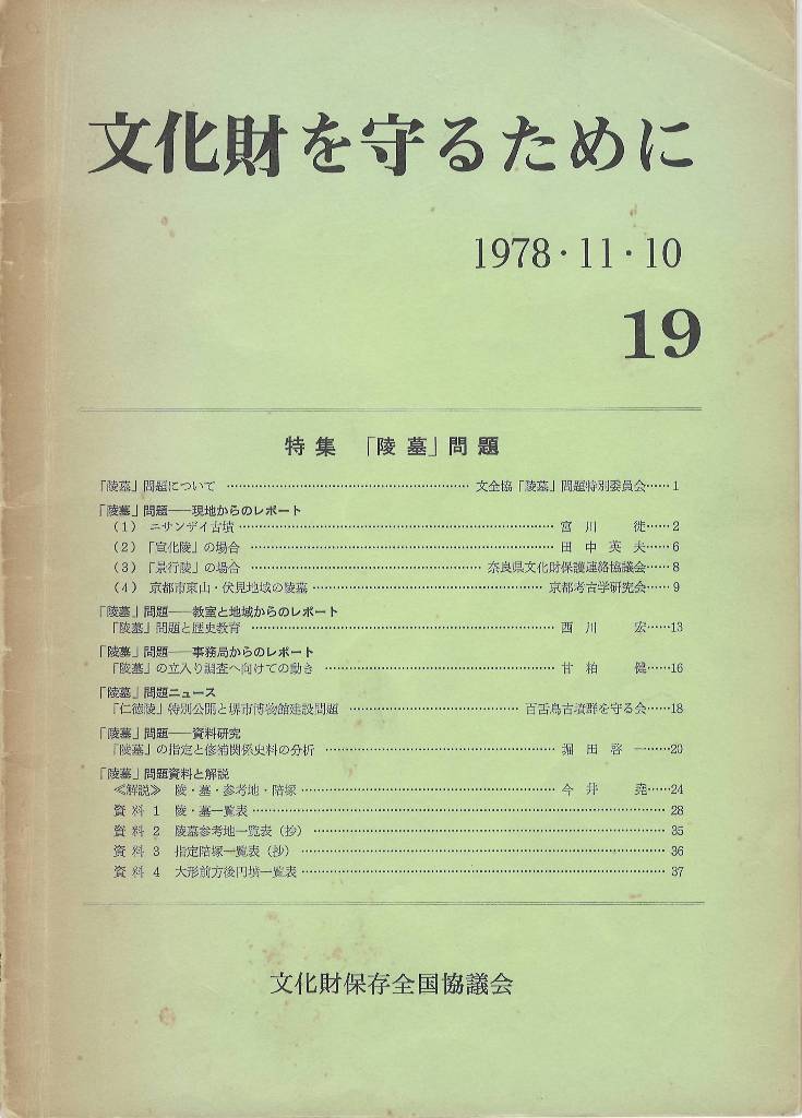 ◆7月22日の日曜日。暑い・・・。昨日の陵墓の片付けとか、そんなんで大歴の仕事には未着手。『文化財を守るために』第19号を紹介しま