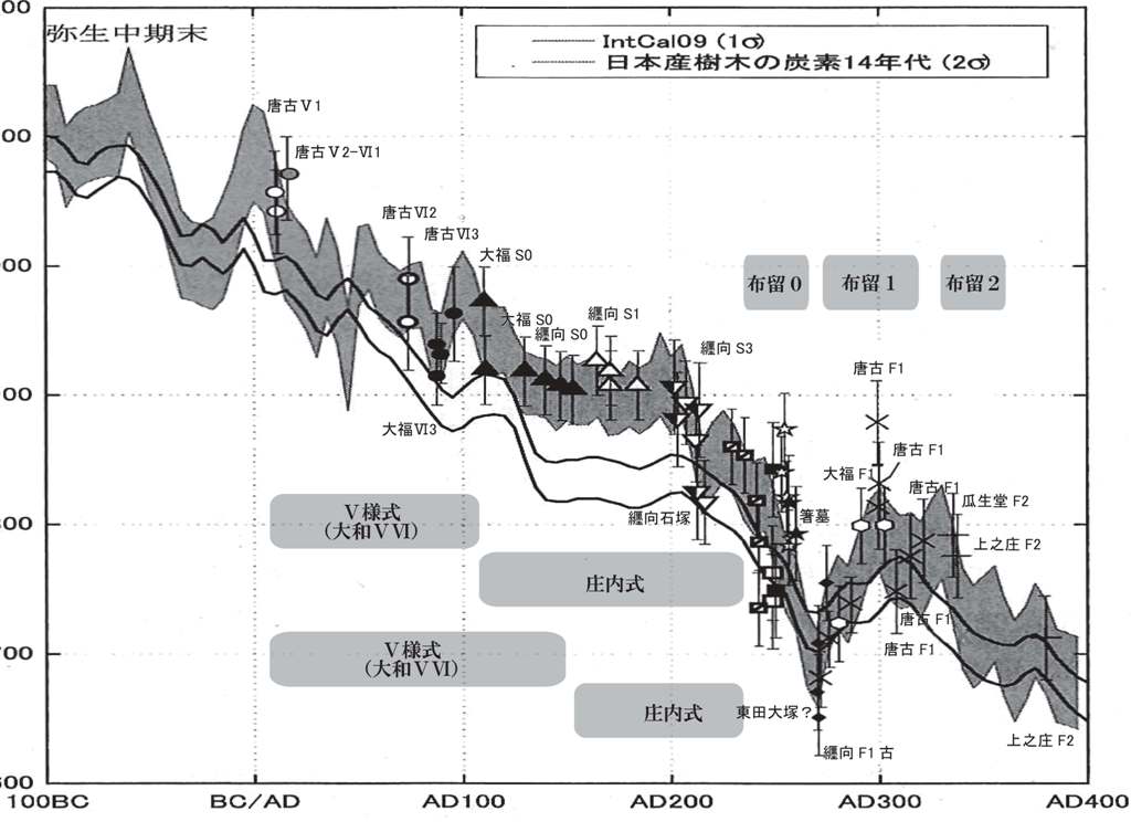◆庄内0式なんて、やめてくれればいいんですよね。たぶん。後期土器だとした方がよほど・・・。で、タテツキはどこで、石塚はどこやねん、と。そう、タテツキの土器にお焦げはないもんかね。あるいは陥没坑内の炭、これを是非ともC14データを出して欲しいもの。藤尾さんの書いたものを見ていても、弥生はじめの土器ですが、南九州でしたか、一見すると古いけど、データで言えば下がり、残存している様子がわかると、そんなことを読んだような気がする。C14の精度があがれば、土器型式へのあてはめや、その平行関係など関係なく、年代が出てくるわけでしょ。大木を燃やしたら別かも知れないけれど、埋葬時に火を使ってて、その炭化物であることが明白な遺構出土のサンプルがあれば、どんどん計測して欲しいですね。