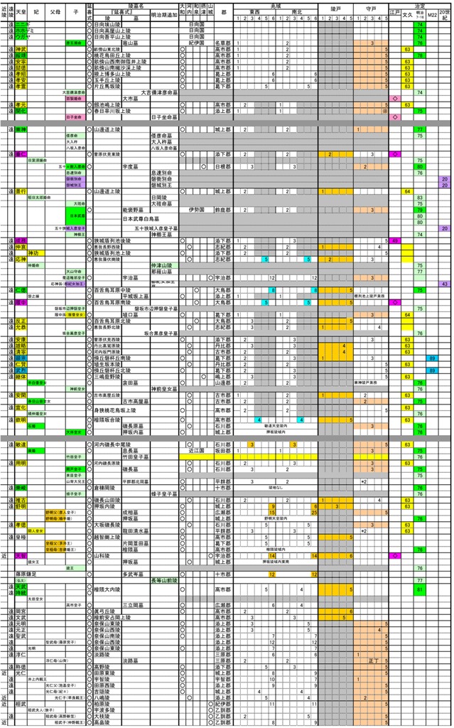何をやるかは決めているものの・・・。で延喜式を表にしていて大きく時間を割かれる。何をやっとんのかとは思うが、学生にも言うのだが、人の図表を使っていては認識は身につかない。『延喜式』にちゃんと向き合うのは、これが初めてだろう。自分で入力しているだけだが、どういう表を作るか頭を使ったり、明治に進められた王族墓を加え、今井堯さんの労作の治定年を書き込んだり、ハマッテくるわけだ。こういう作業によって、ようやく延喜諸陵式が自分のなかで認識される。