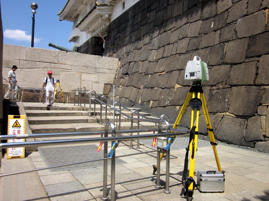 いうことで天守閣となる。ただし、見上げなので、建物はシャドウ部も生まれよう。引きがある側では機械はやや離してやる。ただし南面の小天守は、なかに入らないといけないので、天守閣に電話して立ち入らせてもらう。あと、東面は貯水池があるので、狭い上、電気関係の機械があって封鎖してあり、ほか三面のようには計測不可。まあしゃあない。天守台石垣の上の方については接続させることができるだろうが、下部はデータなし、となろう。