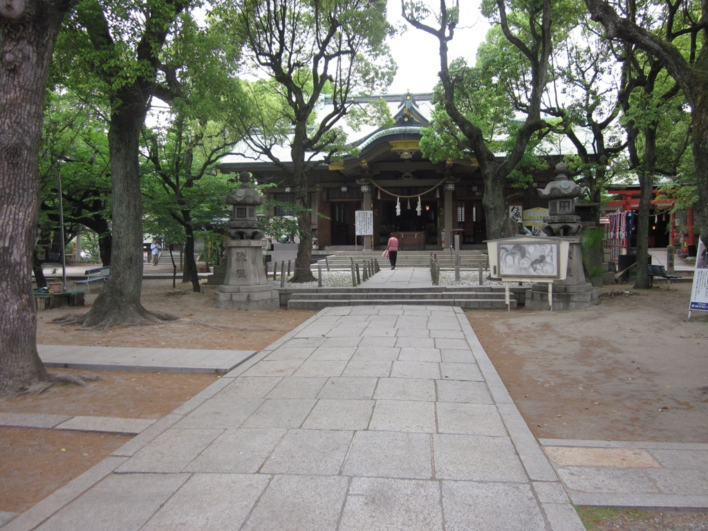 炎上、徳川秀忠が再建。1945年、空襲で焼失。1949年、木造の本殿を再建、翌年のジェーン台風で倒壊。1956年、鉄筋コンクリートで生国魂造の本殿を再建した、とある。古めかしさがないので、ほぼ素通りし、写真もなし。大阪にとって、もっとも重要な神社であるのだが。