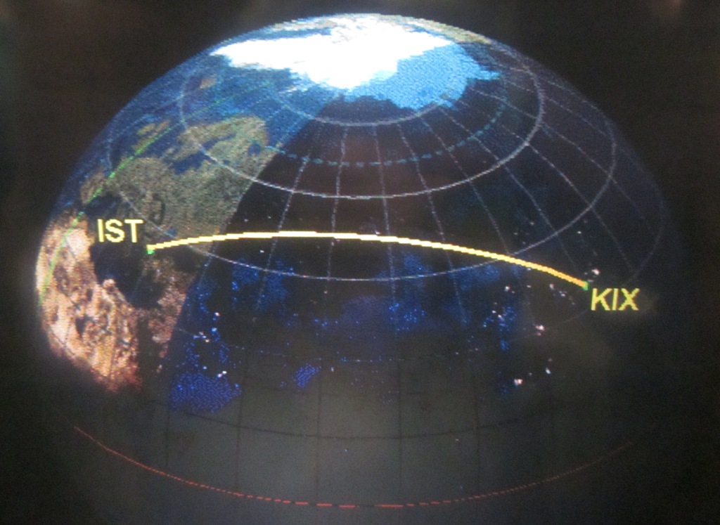 ◆23:30はほぼ予定通りか。2時頃には寝たか。イスタンブールとは時差6時間。9400キロ、13時間の空の旅(日本時間12:30着、イスタンブール時間6:30着予定)。だいたいジェット飛行機の速度が、地上換算で西行きで750㎞/hほどのようであり、2時間で1500㎞、3時間で2250㎞、というのが、大方の目安か。