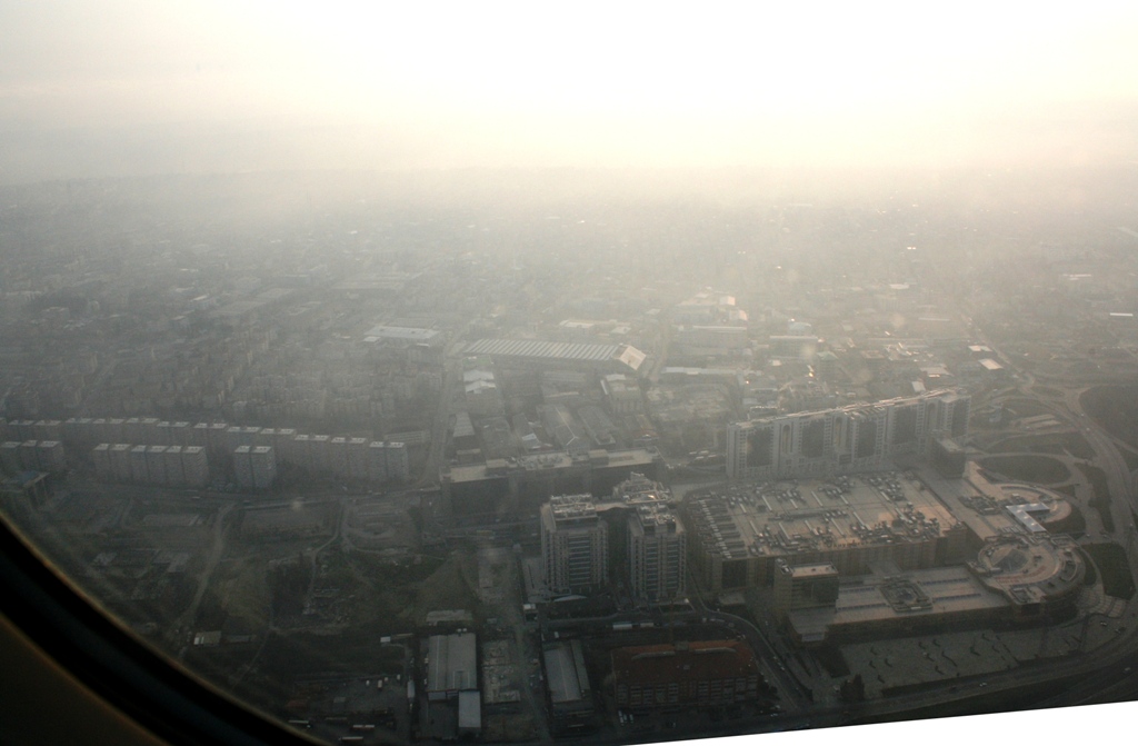 きない・・・。が、イスタンブールの街を見ていると、晴れているのだが、霧が立ちこめていた。遠くに高いビルの先っぽが見える。上空にあがっても、全体に春霞的で、途中からは雲もなくなったのに、コントラストなく、下の地形がぼやけている。白っぽいものだけがなんとかなる。