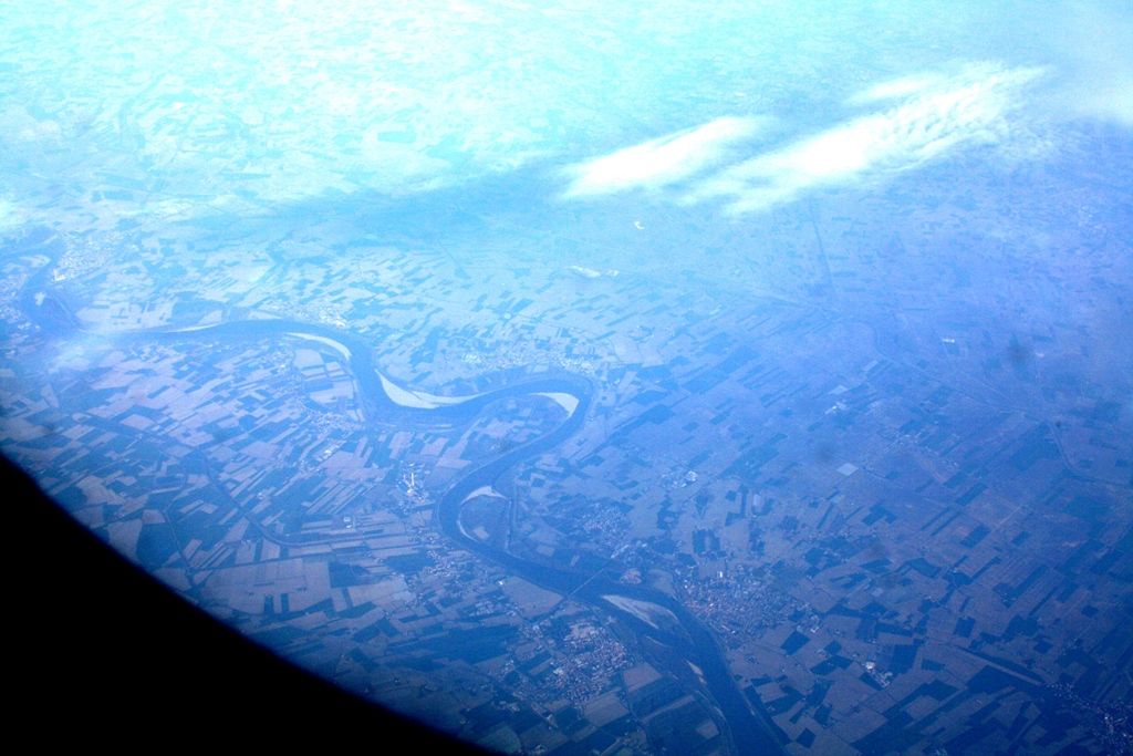 ◆ロンバルディア平野に入る(この名前でよかったでしょうか)、ポー川が蛇行して流れているのが見える。イタリアまでの中欧は山がちで村々は見えたが点々としていたが、イタリアのこの平野は広大で豊かである。果てしなく耕地が続く。