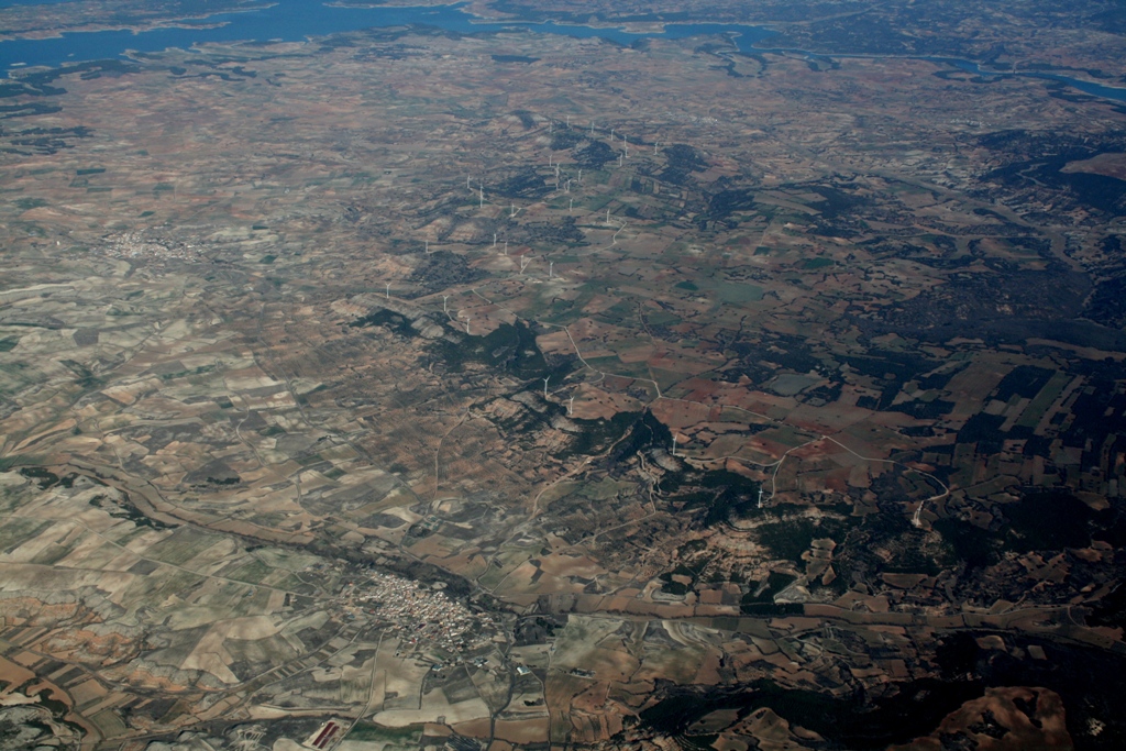 ◆それと、茶色い畑地はいいのだが、白っぽいところが目立つ。乾燥しきっており、また土地も肥沃ではない。林の部分も樹木は緑なんだが土地が白いのだ。貧困な畑地という印象が強い。そういうところも少なくないように思う。スペインはもっ