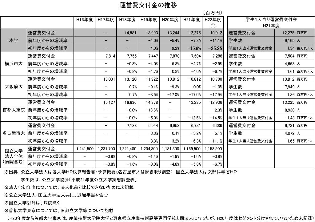 ◆大阪市大の運営費交付金は110億円だそうです。公立大学でやっぱり首都大がいちばんらしい。市大は、