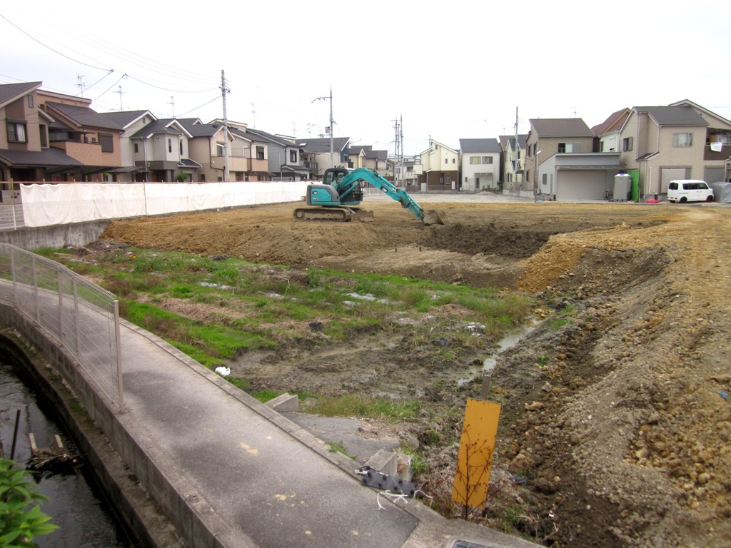 ◆拝所の両側の前方部前面に、新しく宅地分譲され家がならぶ。堤は?、きっと調査してるんでしょうね。現在も拝所のほぼ前面で宅地開発のための地上げが進められていた。古墳の正面が前方部前面でないにしても、景観がどんどん悪化している姿を目撃した気分である。市野山や仲津山の堤上の住宅開発もより古いが、このようにして家が建っていったんだろう、と見る。