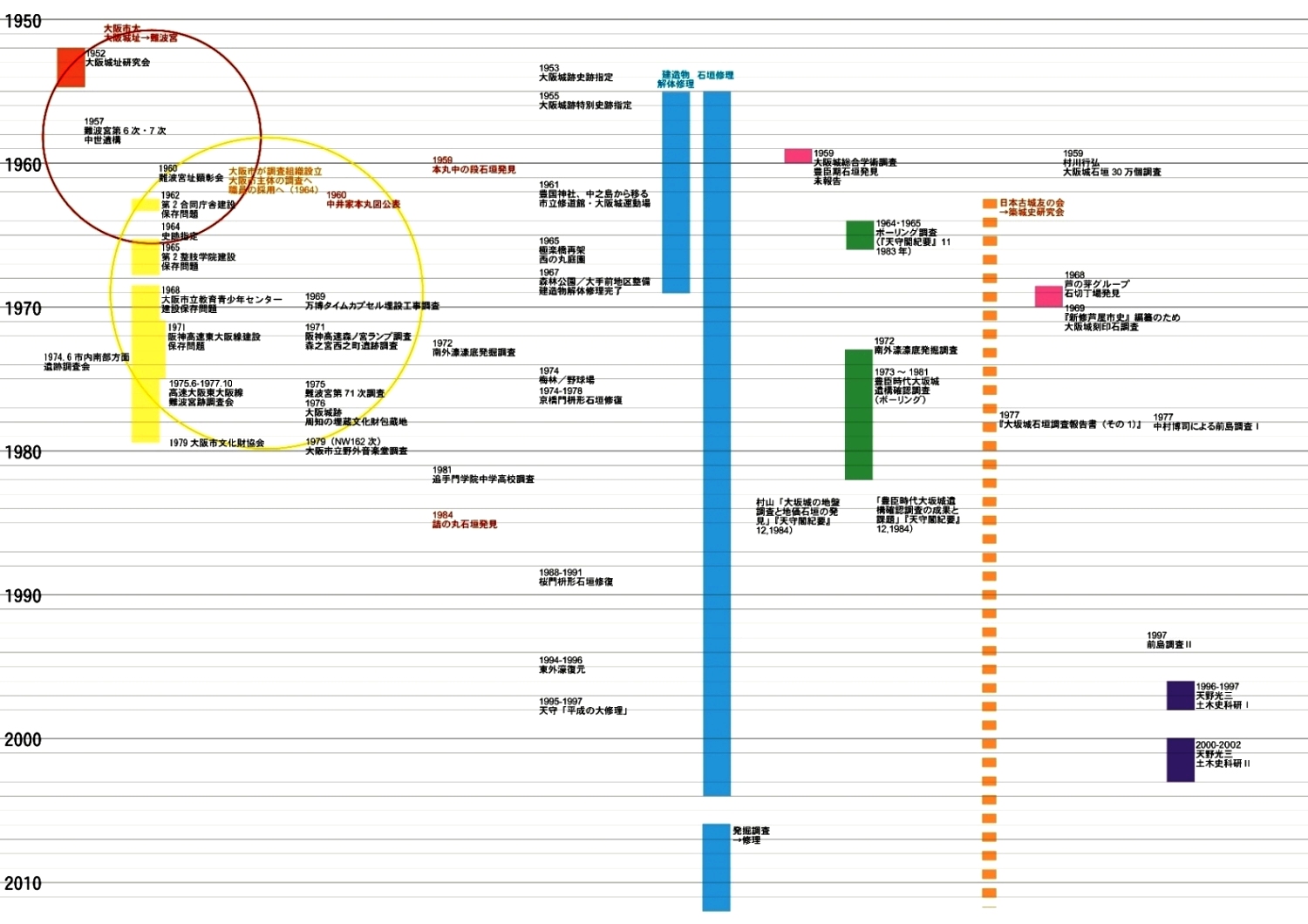 ◆河内大塚山と同じで、やっぱり自分で写真を集めたり、図面をいじったり、表を作ったり、そうしないと認識は深まらない。認識って言ったって、研究レベルの話ではない。何がどこまでやられているのか、わかっているのか、をまとめるだけなのだが、これも働きかけないと身につかないということだ。トヨトミ大阪城の築城過程も学んだ。南外堀でトヨトミ期の石垣が露呈していたことも知る(中村さんの言うとおりでしょうね)。