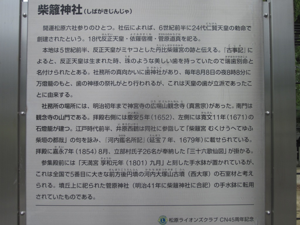 ◆去年初めて行って、今日が4回目くらい。目的は柴籬神社に行くためだが、まず立ち寄る。松原市はけっこうネットで市内の発