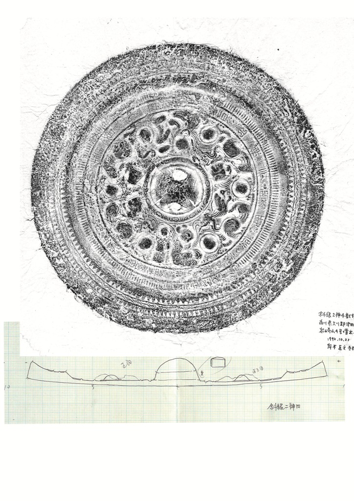◆この鏡、津堂に2面の同笵鏡がある。この岩崎山の拓本や断面図を使うこともなかったが、もしかすると津堂がらみで使うことになるかもしれない。この2面が、関大に破片がそれぞれあって、くっついたというもの。