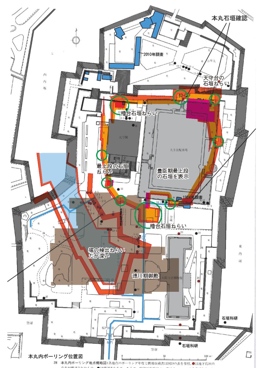 かりして!。まあ、メンツの中では、わたしはこういうコーディネートをやるにふさわしいかもしれない。深いところはわからんし、まずは地表下1mで検出されうる最上段の石垣天場を、天守閣および貯水場周辺をぐるっとやる。そして徳川御殿は別途やる。
