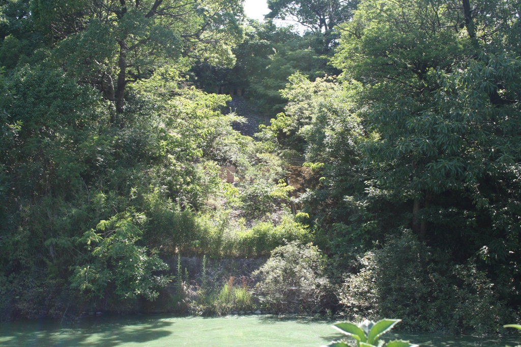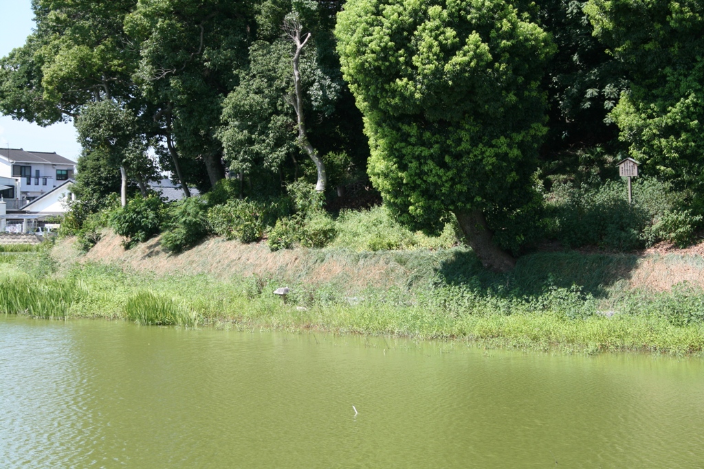 ◆本題に戻って、なので護岸工事はしていない。水位の変化がどのくらいあるのかわからんが、基本的にもとのまま。それはそれでいいのだが、周濠が完周し内部には立ち入れないわけだが、もうすこし内部は樹木を間引いて、外からでも墳丘を視認できるようにしてほしい。