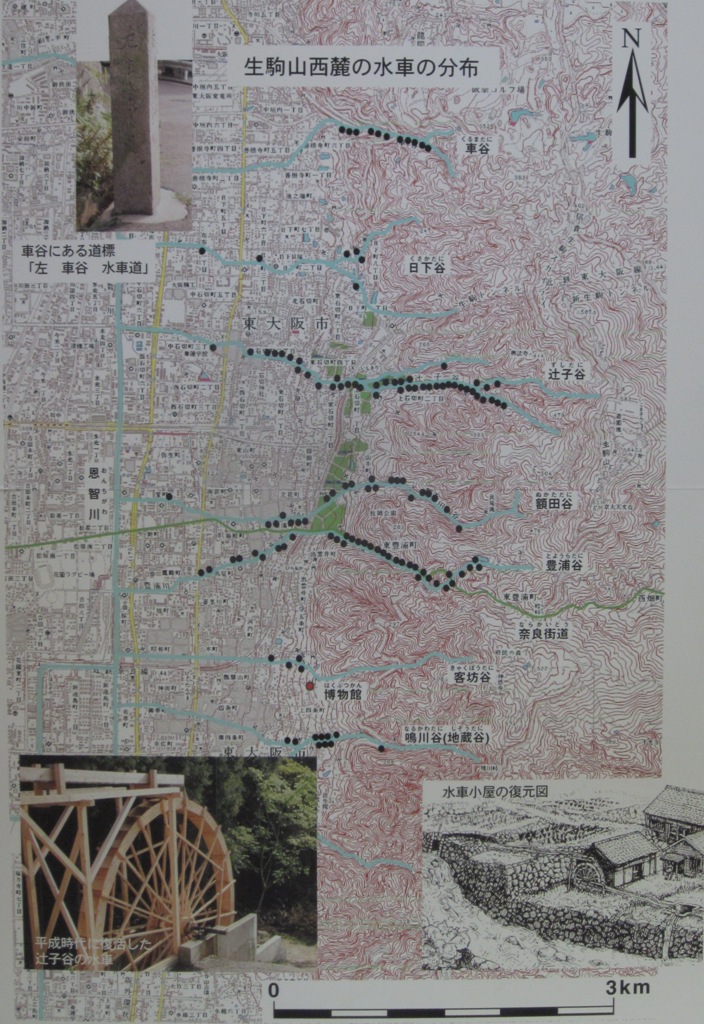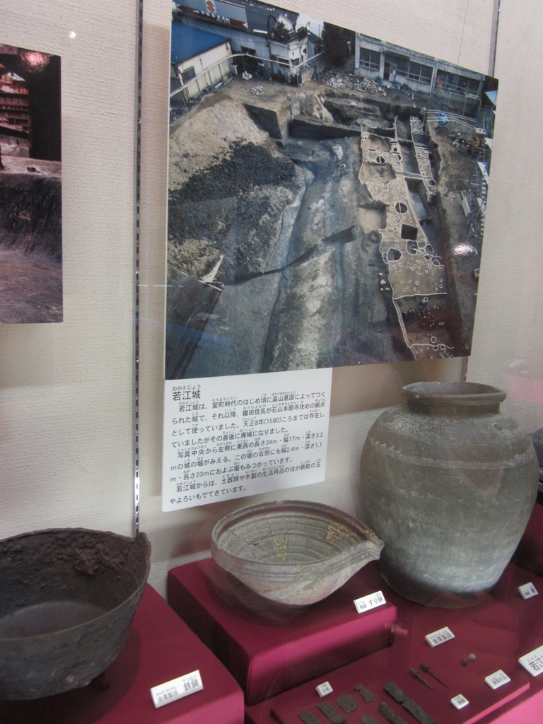 ◆縄文の貝塚あり、弥生の遺跡は瓜生堂や鬼虎川はじめ数多い。鬼虎川の銅鐸鋳型などもある。古墳時代では西の辻遺跡の水の祭祀遺構の模型もあった。土師器もならぶ。学生らに、弥生土器・土師器の変遷の基本を教える。あとは、法通寺(石切神社のとこ)の瓦(池田寺Ⅱ式など)、山岳寺院の客坊廃寺と神感寺跡、若江城など、なかなか見応えがあった。江戸時代の生駒西麓の谷筋に設けられた水車のコーナーもある。そして東大阪市の成立の話、いまの近鉄線の開業の話もある。実に充実している。望むらくは、ここに大阪城の石切丁場の話が加わってほしいものだ。東大阪にいくので、あちこちの残石も見て回りたかったが、真夏でもあり、今回はパスした。
