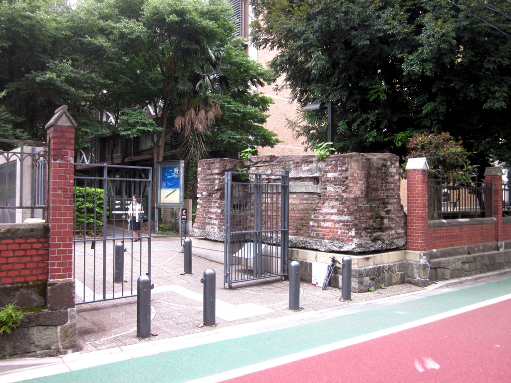 ◆で、この門のところ、加賀藩前田家の屋敷があり、レンガの基礎が見つかり(明治に入ってのことなんでしょうね)、それをそのまま近代建築の資料として、門のところに配置してあった。なんだか、ゴツイレンガの固まりがあるのだが、そういう訳だそうだ。