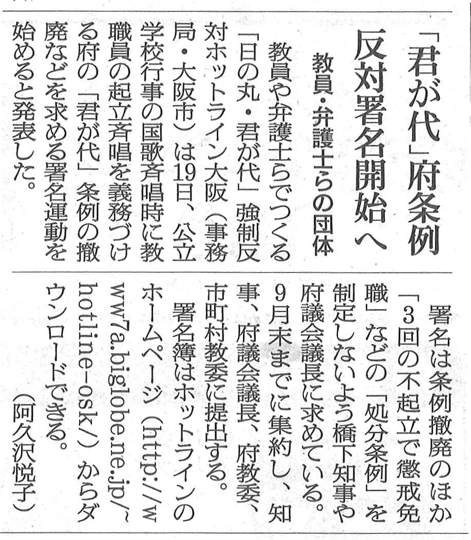 阪」では、本条例の撤廃を求める署名運動を始めている。内容は、大阪歴史学会など3