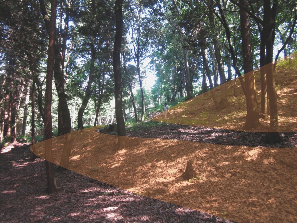 ◆前はもっと樹木も繁茂していて、縦断するような見学路はあっても、あんまり墳丘各所に入っていけないような、あるいは入っていく気がしないような状態だったと思うが、非常にスッキリしている。2段築成は明らかな間違いで、後円部の背後を含めて3段築成である。下段の葺石が溜め池の斜面に露出している。