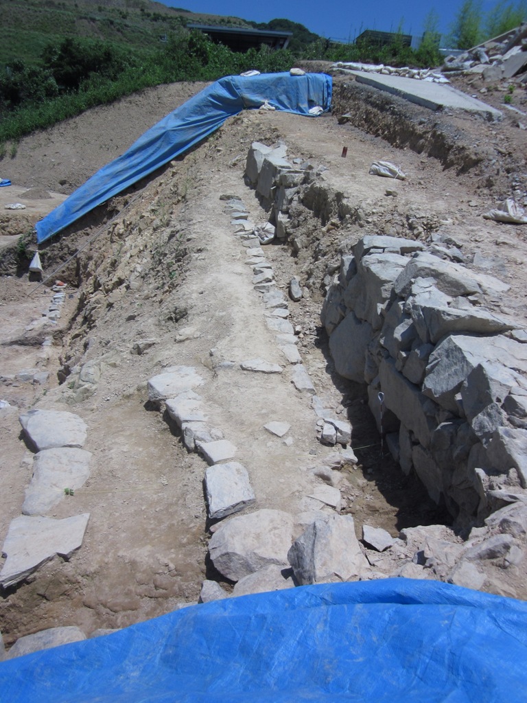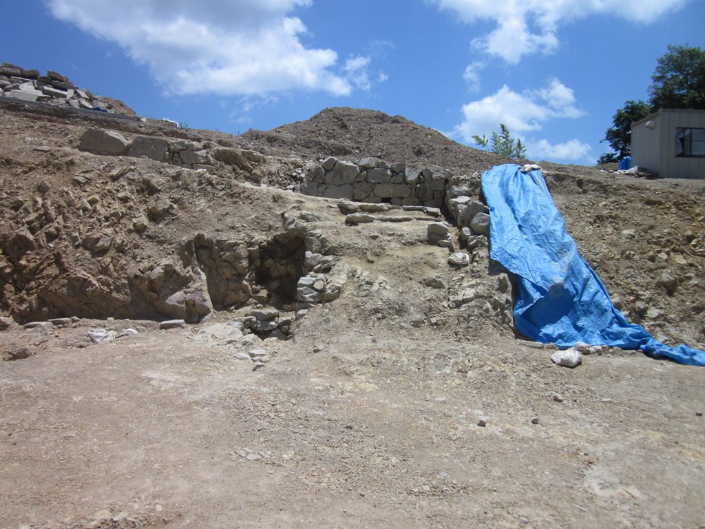 しかし、今回の調査で発見された遺構は、北からのびる尾根の西斜面を加工し、根来寺中心部の防御を意図した施設と考えられ、学術的にきわめて貴重である。南にある大門池と一体となって、和泉国からの交通路である風吹峠側に対する防御ラインの一画をなすもので、城郭的機能をもつものと評価できるであろう。その意味で、前山や西山城とともに、根来寺の軍事勢力としての性格をよく示すものである。斜面を多重に削りだした遺構には、急傾斜にもかかわらず石垣がよく残存しており、尾根上に想定できる鯱瓦を葺いた建物とともに、根来寺の威容を示す重要な施設である。