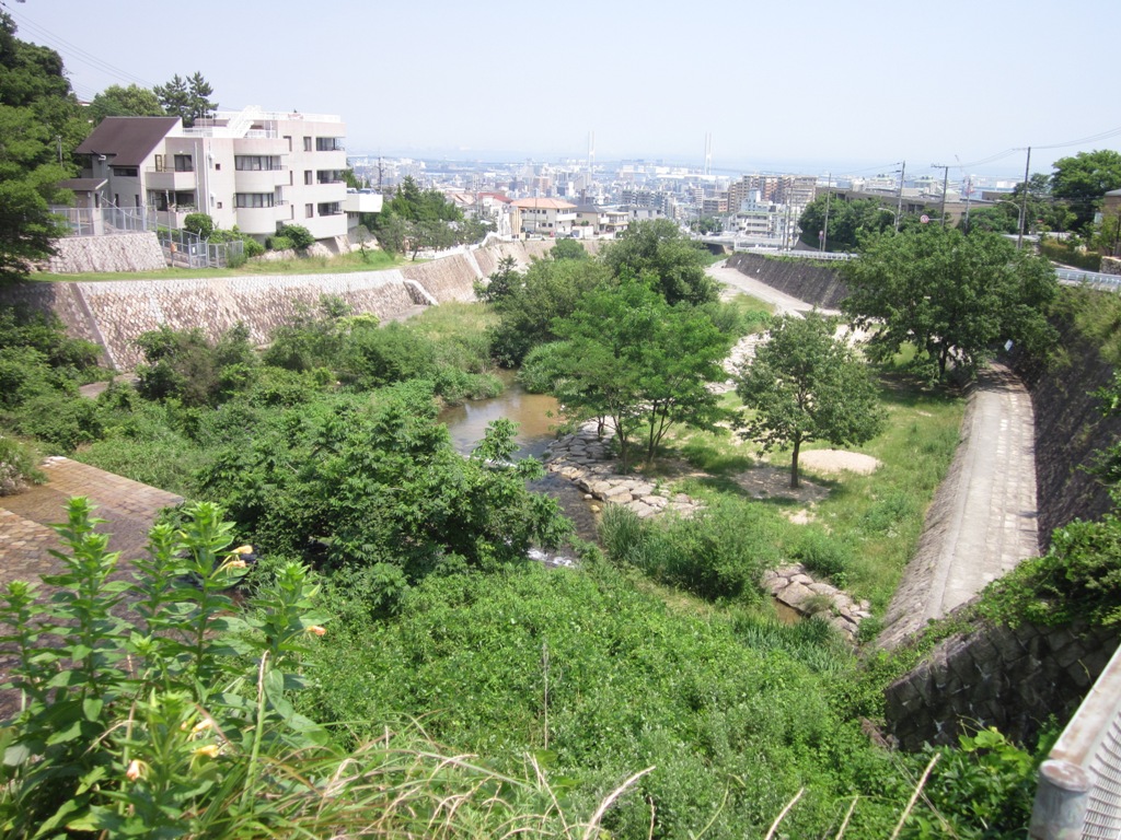 ◆博物館の建物そのものが文化財。写真を撮るのを忘れたので(この日はものすごく暑かった)、HPの画像を掲げさせてもらおう。自分の写真は1枚、すぐ横のバス停から見下ろした大阪湾。とてもいい場所に建っている。どこから入ったらいいのかわからずウロウロしたが、手前には新館もある。