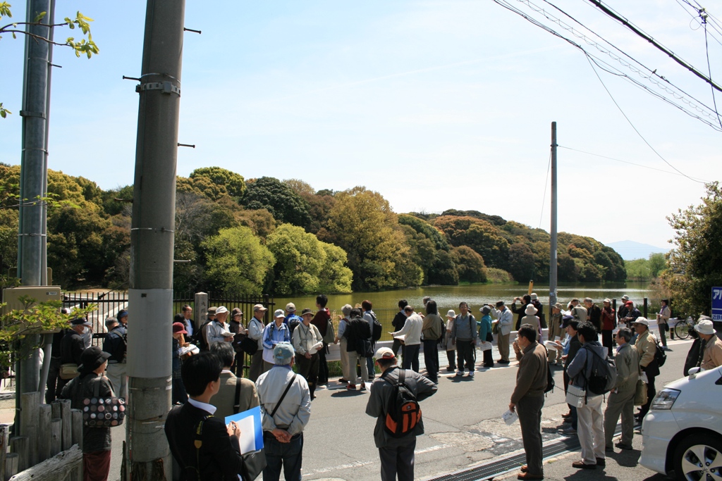◆午前の見学会は70名、午後100名、万々歳の人数だ。朝の70名はちときつく、一団で動くにはかなり多いが、西田孝司さんの先導で、大塚山古墳および周辺を見て回った。むろん中に入れるわけではないが。