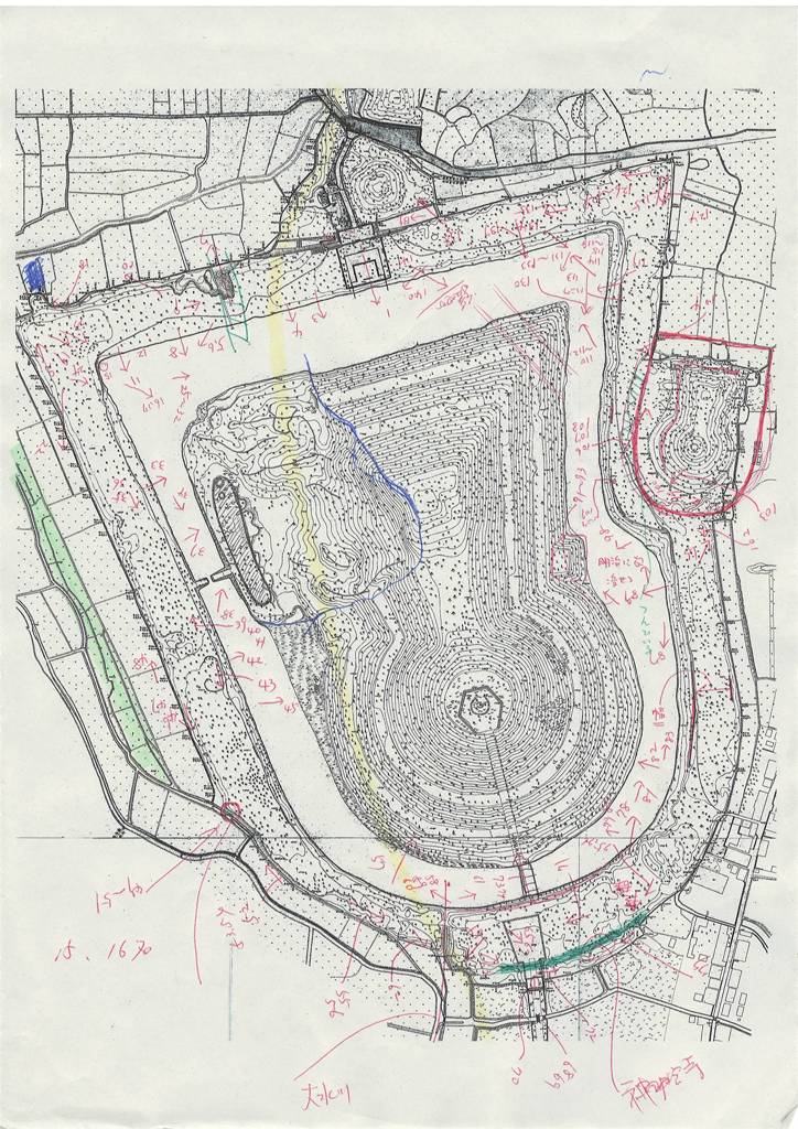 ◆共和さんに見積をもらい、藤井寺市にも了解をもらった。なんとか、3月に計測作業ができそうである。業者に依頼したのは内堀以内5万㎡。だが既に道路や宅地になっている堤、外堀、外堤もある。完成形態としては、それら全体を含めた図に最終的にすることが望ましい。さらにいえば、現状図のみならず、開発前の空中写真などから、以前の姿の図も作れないかとは思うが、一気にはいかない。まずは内堀以内の部分についてやっつけよう。