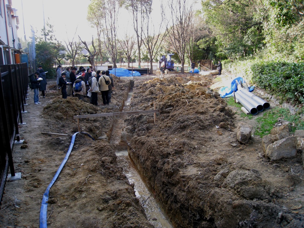 ◆雄略陵で配水管の埋設工事が行われていて、その見学会があるので行く。なんと20数名が参加。まあ、