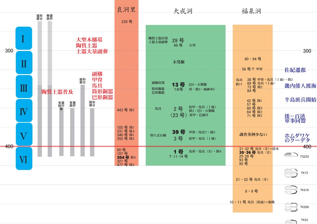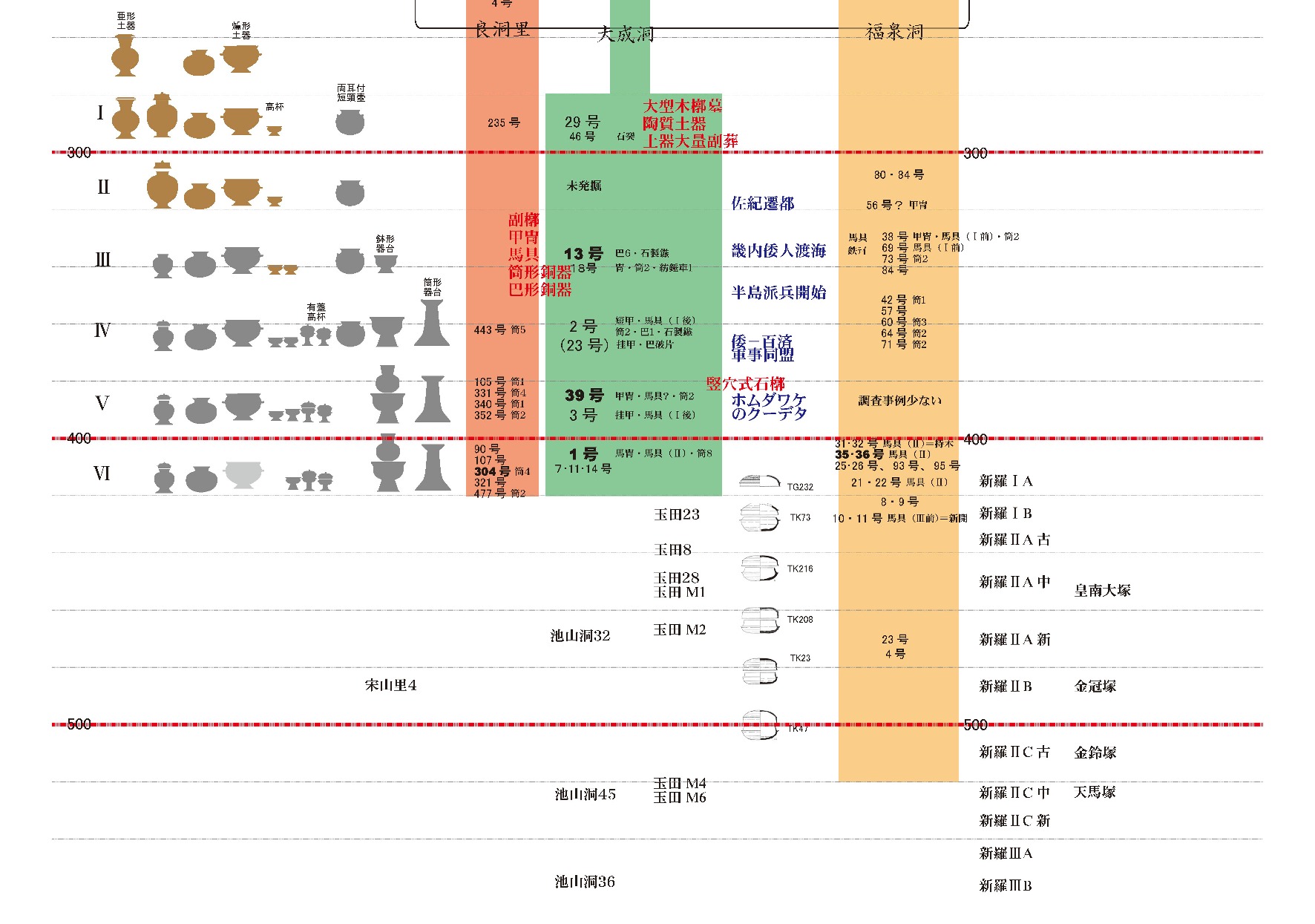 れなのか、代表格を教えてもらう必要がある。これに申先生の土器編年図をスキャンしてトレースしようかと思っていたが、むしろ、3つの古墳群の埋葬施設と副装品の画像を貼り込んでいく方がいいだろう。