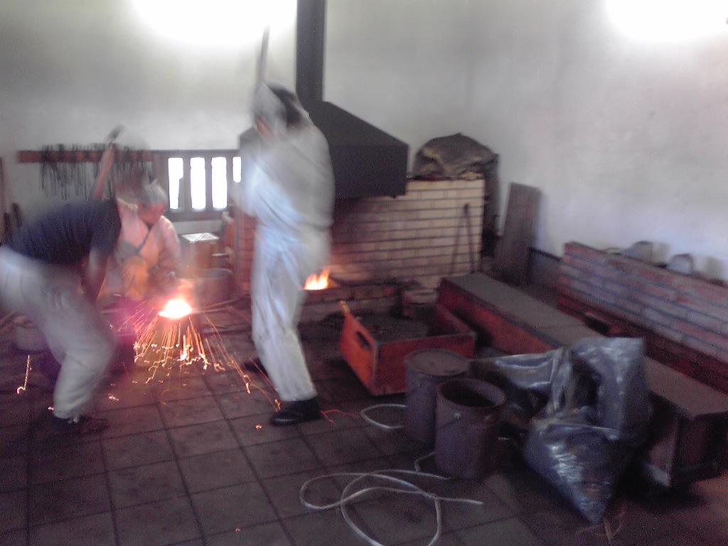 ◆道路沿いの讃岐うどん屋で昼を食べて、長船の資料館へ。展示室でわれわれが熱心に見ていると、丁寧に解説をしていただいた。第2土曜日で、刀鍜冶の実演があるというので見た。炭と鞴がいかに重要であるかを認識した。多量に放り込む炭、そしてず~っと鞴を動かして鉄素材を熱している様子に感動。鞴って、あんなにずっと動かしているものという認識が実はなかったのだが、実際に叩いている時間より鞴を動かしている時間の方が長い。製炭窯って、7世紀以降のものしか認識していないが、5世紀のものって見つかっているのだろうか。鍜冶技術の上で製炭技術もきわめて重要であ