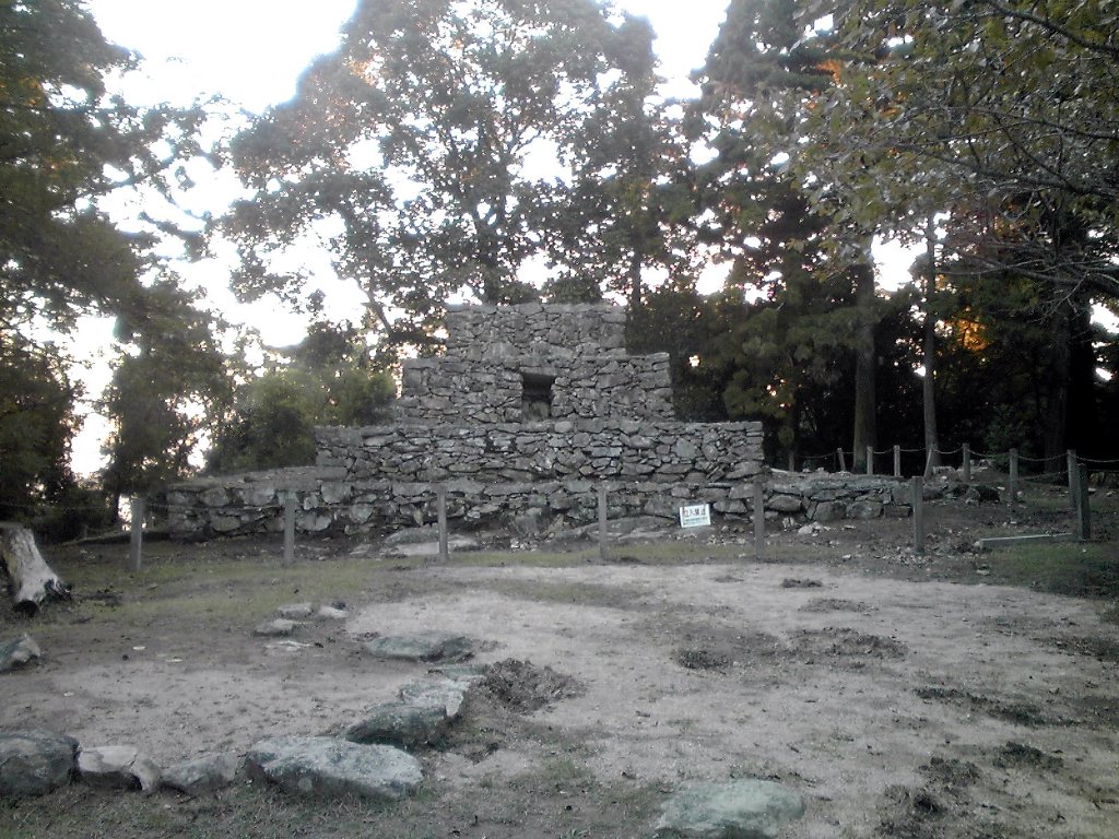◆そこから、なぜか熊山遺跡をめざす。なんかぐるりと北側に廻り、夕刻の迫る山道を車で上がる。頂上に着き、駐車場に車を置き、学生らと遺跡まで少し歩き、、到着する頃はすっかりと暮れかかっていた。