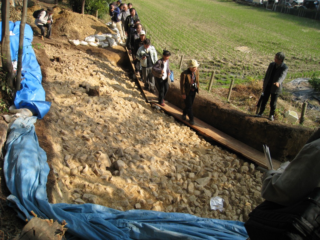 ◆大久保さんが、事後の検討会で、同時調査はけっこうだけれども、それが、では新木山古墳の周濠部を史跡にするといった保存措置につながるようなものになるのか、なるべきではないのか、という指摘はもっともである。御廟山古墳の場合は、堺市は、世界遺産のこともあり、宮内庁がカバーしている墳丘部の外を史跡にしようとしている。新木山古墳の場合はどうなのか、という問いかけであろう。それは、一方で、文化庁や奈良県教育委員会の指導力であり、他方、むろん地元自治体の力量が問われることになる。