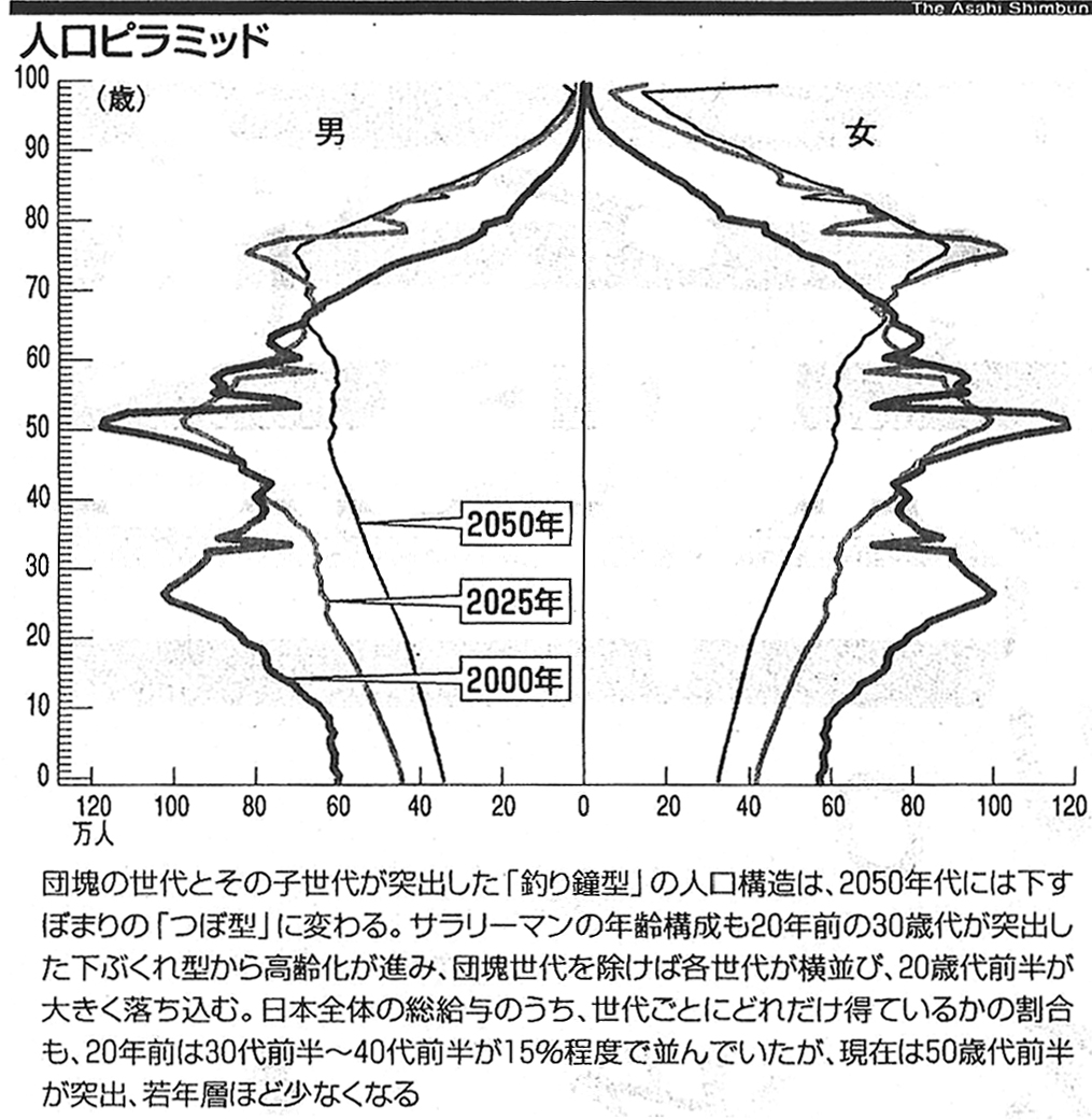 ビで、特養ホームに入れたいが、700人待っている、といった報道があった。要は親を預けたくても入れてもらえないのだ。この国の貧困さを象徴する。これだけ少子高齢化といわれ、高齢者人口が増えることがわかっていながら、この無策ぶりである(グラフは2003年12月14日朝日新聞)。