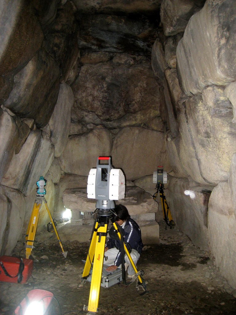 ◆で、本日、計測作業をおこなった(20100307)。陰影図の仕上がりが楽しみである。人間による図化はこれからも必要だが、タッチの差もある。石の起伏の感じはわからない。レーザースキャンだと、石材の表面のでこぼこの質感まで表現できる。これから、畿内の標式的な石室は、同じ計測によるデータを集積させたい、それによって比較検討したいと思っている。その第1歩となる記念すべき1日だった。