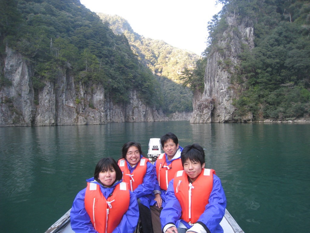 ◆瀞峡、午後で峡谷は既に日は山に隠れていたが、家族4人、