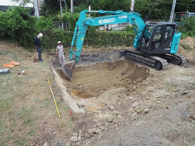 のは危険なので、機械掘削でサッと出し、写真とメタシェイプで記録を取り、すぐに埋め戻してしまうことにしたもの。